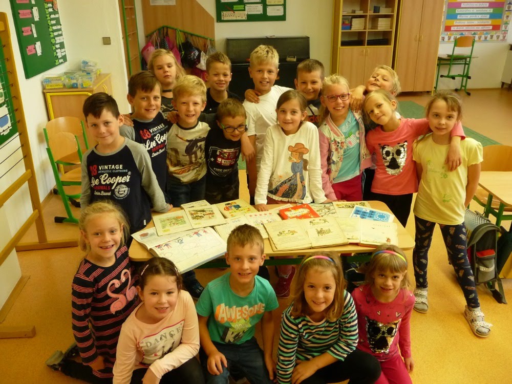 Děti si s paní učitelkou vzájemně vyměnily informace o tom, jak ve škole pracují, ukázaly paní učitelce učebnice, pracovní sešity, pomůcky do matematiky zaměřené na činnostní učení, pracovaly s interaktivní tabulí apod. Paní učitelka děti seznámila s tím, jak se učilo v 70. a 80. letech.
